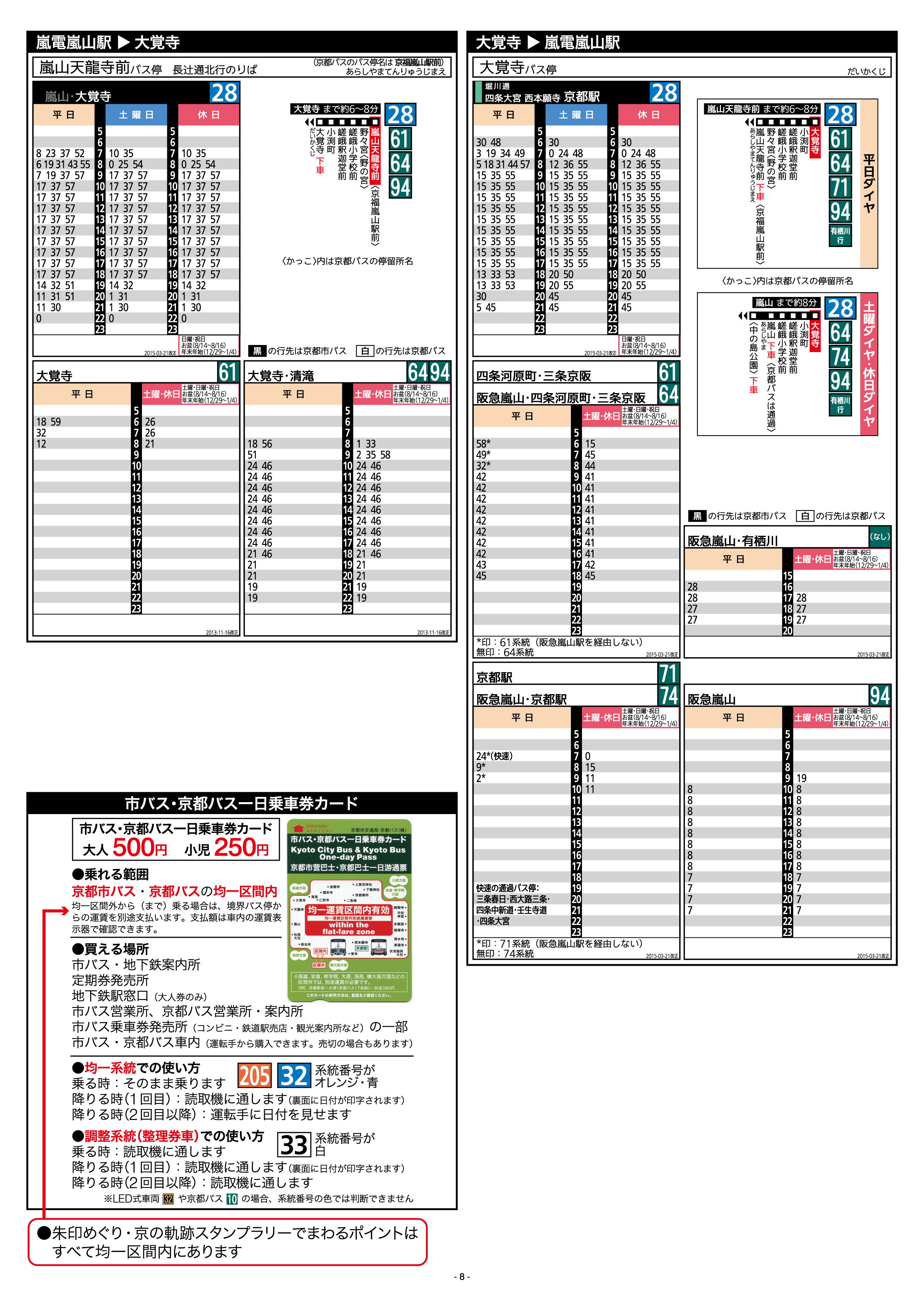 ※ご注意:プリンセスラインバスは市内の他のバス会社と異なり、現金と自社専用回数券しか使えません(市バス・京都バス一日券やICカード、スルッとKANSAIカード、市域共通回数券などは一切使用出来ません)。また、「歩くまち京都」などの公共交通案内に路線が表示されません。