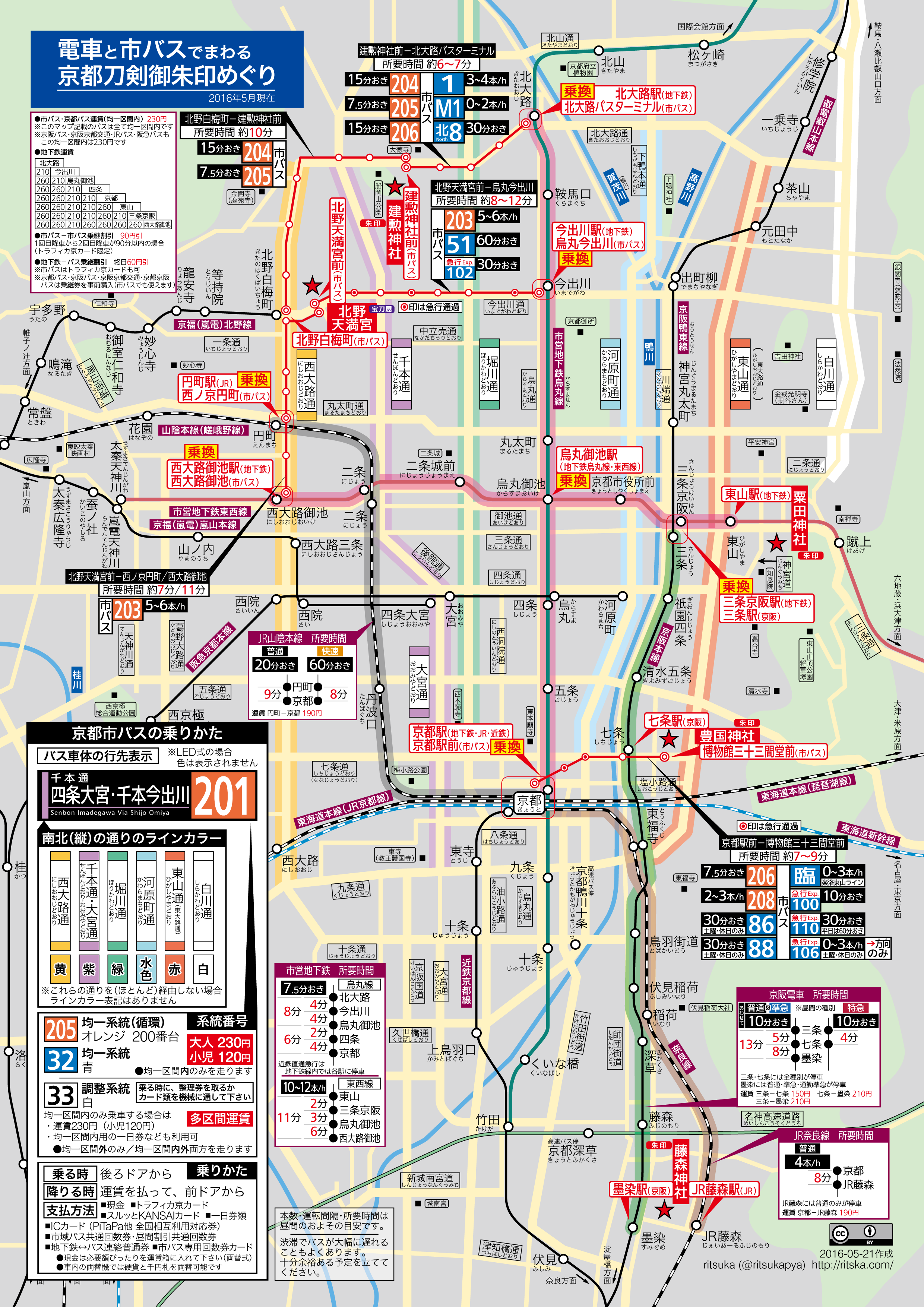 ・京都市内の電車・バスの総合的な案内は「A 電車と市バスでまわる京都刀剣御朱印めぐり」をご覧下さい。